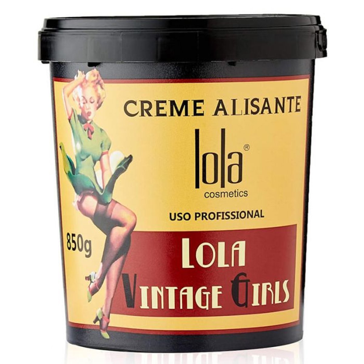 O creme alisante Vintage Girls da Lola Cosmetics, possui uma fórmula avançada de alisamento que combina tecnologia inovadora com óleo de argan e protege enquanto alisa e relaxa.